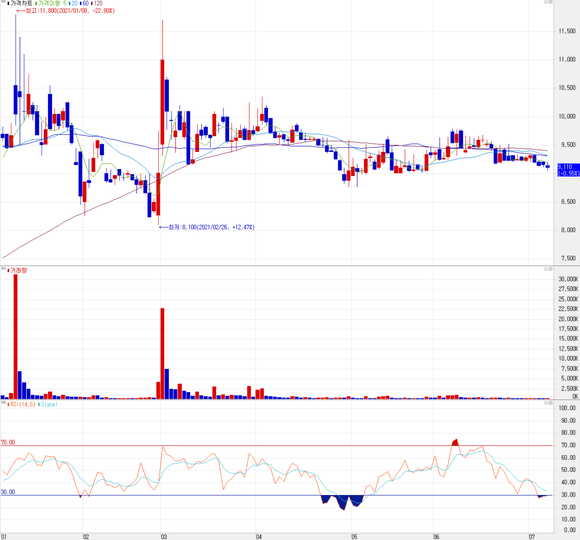 현대공업 주가 추이 (일봉: 2021.01 ~ 2021.07)