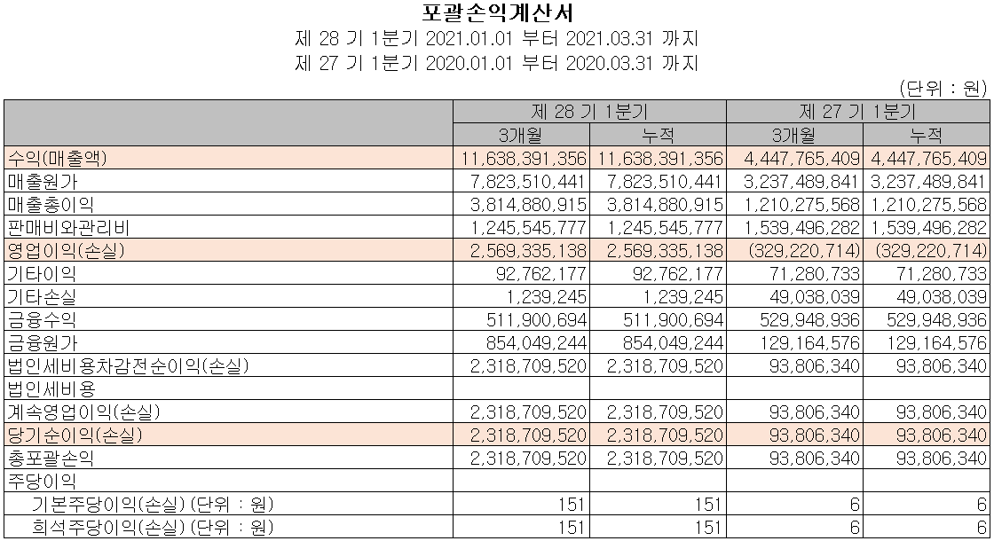 손익계산서 - 실적