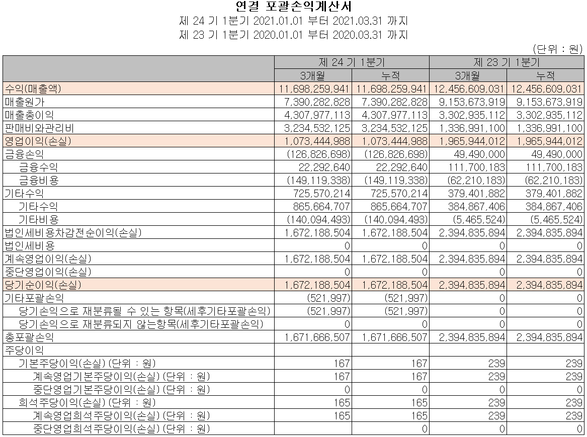 손익계산서 - 실적