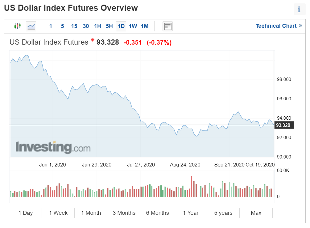 Investing.com에서 달러 인덱스를 조회한 결과 현재 93.328을 기록 중입니다.