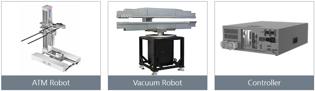| AMOLED, LCD, 반도체, LED 등 | 글라스반송용 로봇, 웨이퍼반송용 로봇, 진공로봇, 컨트롤러 등 | ||