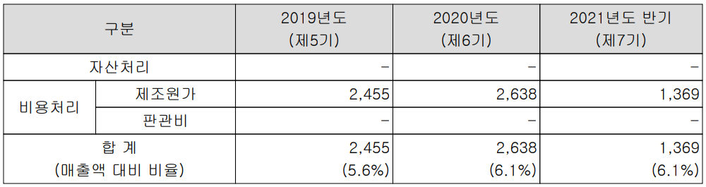 당사는 지난 2021년 상반기 중 전체 매출액의 6.1%인 14억 원 규모의 비용을 연구개발에 투입하면서 2차전지 전해액 등 첨단 산업용 소재 및 의약품 중간체 등의 연구를 지속하고 있습니다.