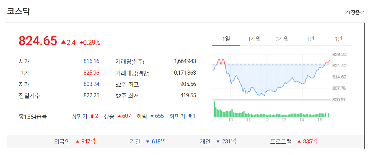 | 마감 시황(2020.10.19) 코스피, 코스닥, 해외증시 (0) | 2020.10.19 |