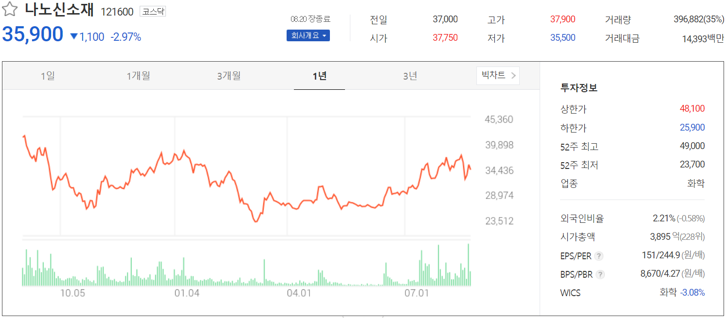 나노신소재 (121600) - 주가 전망 및 실적 분석
