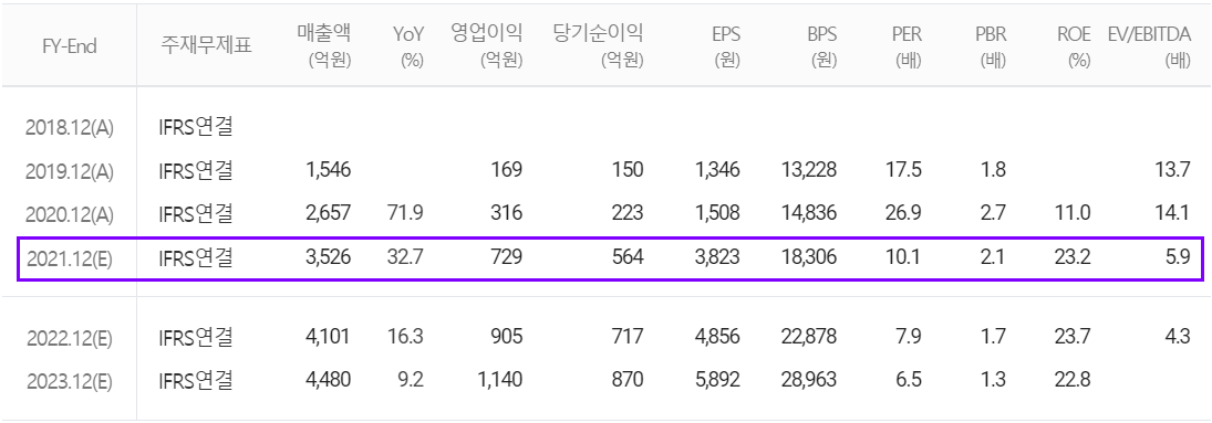 지난 2021년 2분기 실적은 매출액 1.259억 원으로 전년 동기 대비 93.7% 증가했고, 영업이익은 317억 원으로 301.2% 증가, 당기순이익은 250억 원을 기록하면서 312.1% 증가했습니다.