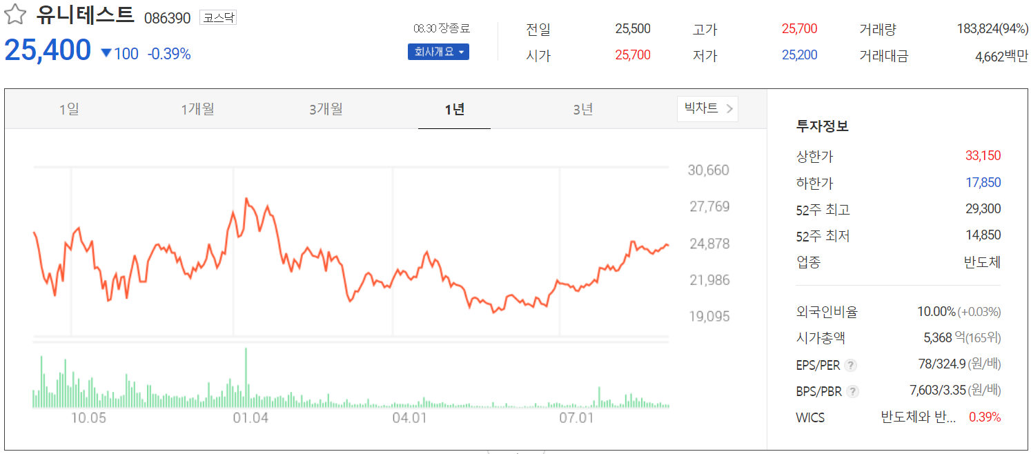 유니테스트 (086390) - 주가 전망 및 실적 분석
