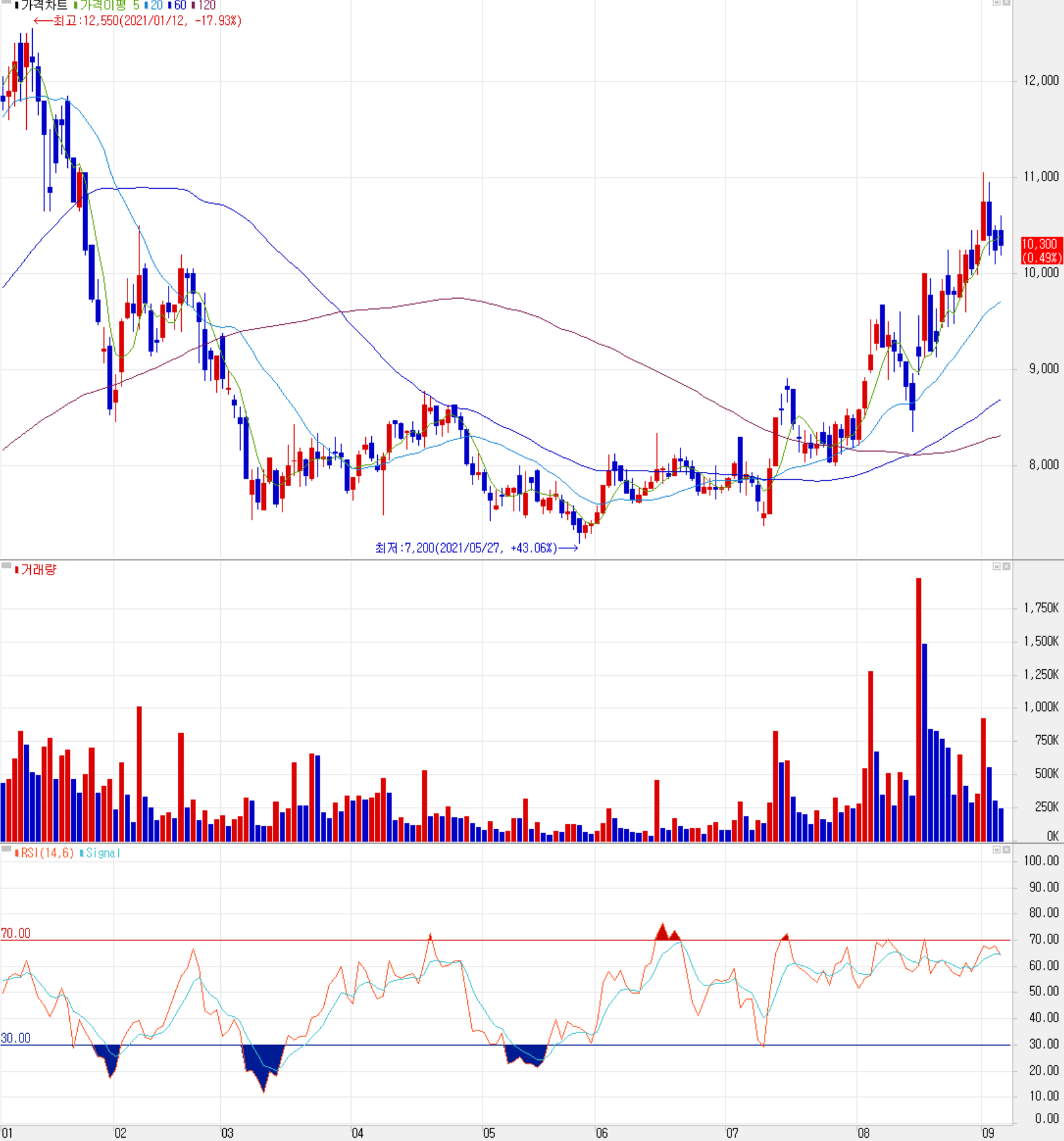 제이티 주가 추이(일봉: 2021.01 ~ 2021.09)