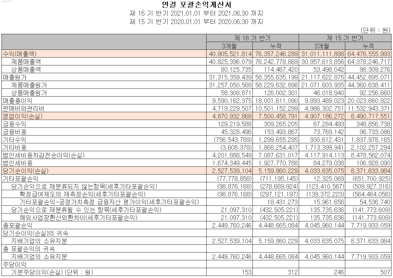 지난 2분기 실적은 매출액 409억 원으로 전년 동기 대비 31.9% 증가했고, 영업이익은 49억 원으로 0.7% 감소, 당기순이익은 25억 원으로 37.3% 감소했습니다. 코로나19의 장기화에 따른 재택근무 등 비대면 문화의 확산으로 가전제품의 수요가 증가하면서 당사의 실적도 확대되었으나, 감가상각 및 재고자산 평가손실 등매 출원가와 판관비 상승으로 이익규모는 감소하였습니다.
