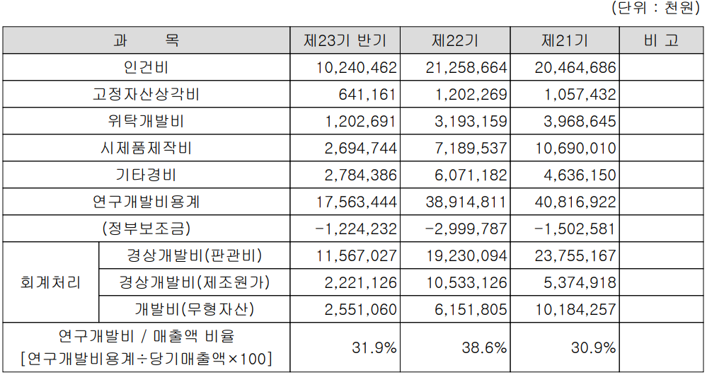 당사는 지난 상반기 매출액의 31.9%인 176억 원 규모의 비용을 연구개발에 투입하였습니다. 팹리스 기업 특성상 설비 등의 투자가 없이 칩의 설계와 개발에 주력하기 때문에 연구개발 비중이 높은 편입니다.