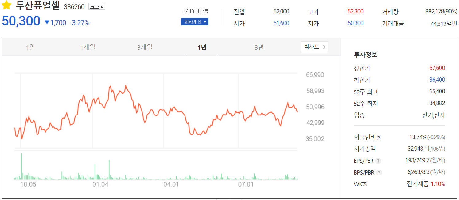 두산퓨얼셀 (336260) - 주가 전망 및 실적 분석