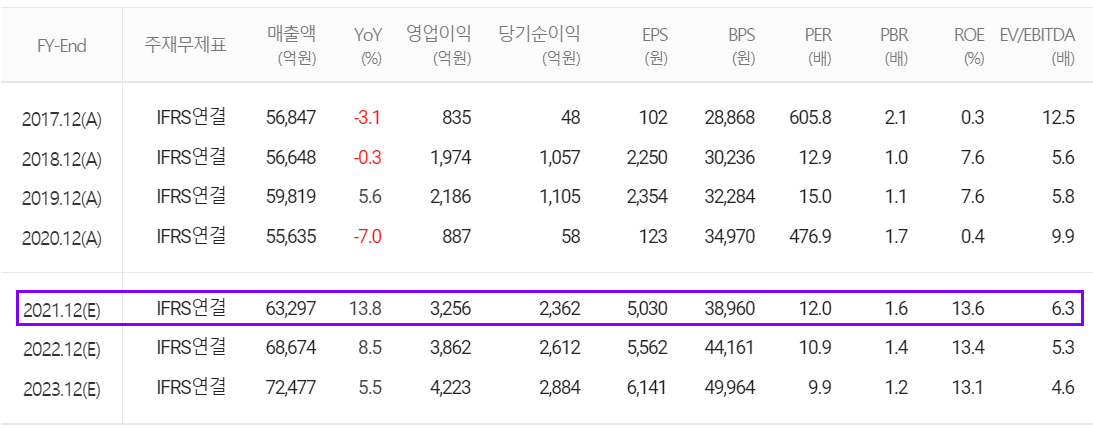 당사의 2021년 3분기 예상실적은 매출액 1조 5,612억 원으로 전년 동기 대비 4% 증가하고, 영업이익은 786억 원으로 2.5% 증가할것으로 추정했습니다.