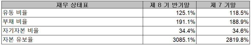 2021년 6월 30일 기준 재무안정성 비율에서는 유동비율 125.1%, 부채비율 191.1%, 자기자본비율 34.4%, 자본유보율 3,085.1%를 기록했습니다. xEV, ADAS 등 미래 성장동력을 위한 투자로 부채비율이 높은 편이나 매출 가시화로 응답해주고 있습니다.