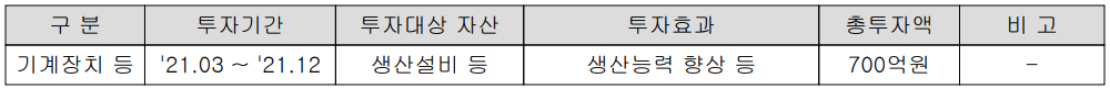 주요 설비 투자 계획
