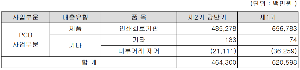 당사는 PCB(Printed Circuit Board, 인쇄회로기판) 잔일 사업부문으로 다양한 전자제품에 적용되는 PCB의 개발 및 공급에서 반도체 PCB인 Substrate에 대한 제품을 공급하고 있습니다.