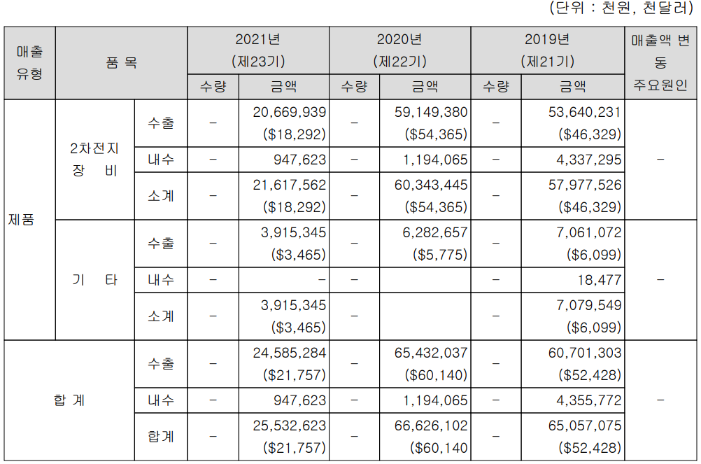 2. 중국내 전기차 산업 보조금 지급이 2022년까지 연장됨에 따라 당사의 설비 공급 증가 추세