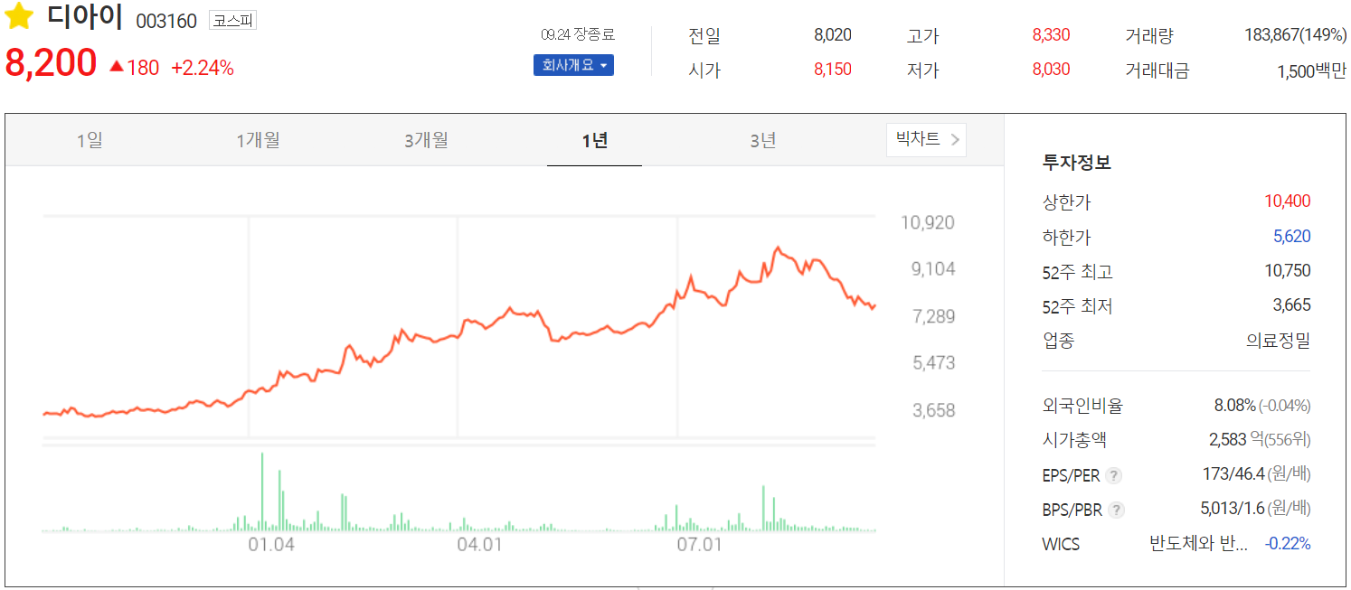 디아이 주가 4%↑..."올 2분기 영업익 113억, 전년比 81% 증가" - 아주경제