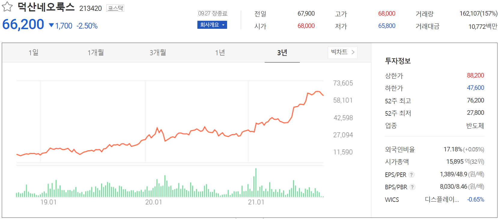 OLED 유기재료의 국내 시장 최강자이자 소재 국산화 대표기업인 덕산네오룩스(주)의 2021년 상반기 실적 분석 및 주가 전망을 공유합니다.