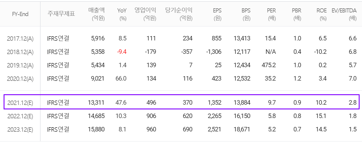 2021년 연간 예상실적에서는 매출액 1조 3,311억 원으로 전년 대비 47.6% 증가하고, 영업이익은 496억 원으로 270% 증가할 것으로 추정했습니다. 하반기 인터플렉스의 실적 턴어라운드, 당사의 HDI 매출 증가, 반도체 패키징 단가 상승 및 고객사 DDR5 메모리로의 전환 등에 따른 수요 증가로 매출 1조 원을 크게 넘어설 것으로 예상하고 있습니다.