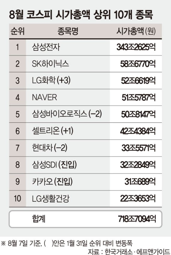 8월초 배터리 3 사가 상승랠리하면서시가총액 3~9위 자리가 변동되었습니다. 현대모비스와 삼성물산이 삼성SDI와 카카오에 밀려 10위권 밖으로 떨어졌고, LG화학은 최근의 빠른 주가 상승을 바탕으로 시가총액 3위를 기록하며 2위인 SK하이닉스마저 위협하고 있는 상황입니다. SK이노베이션은 지난 금요일 (8/7) 기준 시가총액 17조 137억으로 코스피 시가총액 19위를 기록하고 있습니다. 전기차 배터리 3 사인 LG화학, 삼성SDI 그리고 SK이노베이션이 향후 언택트와 함께 코스피를 이끌어갈 주도주의 역할을 할 날이 머지않은 것 같습니다. 아니 이미 시작되었다고 하면 섣부른 생각일까요?