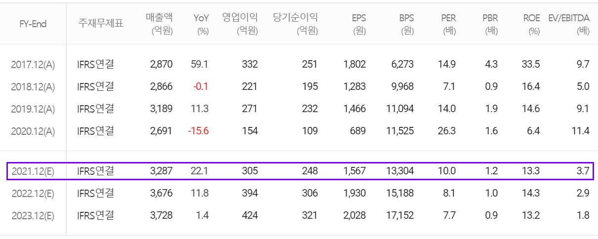 2021년 연간 예상실적에서는 매출액 3,287억 원으로 전년 대비 22.1% 증가하고, 영업이익은 305억 원으로 98% 증가할 것으로 추정했습니다. 주 고객사인 삼성전자 평택 공장 수요의 증가, SK하이닉스 M15. M16 라인 반도체 장비 수요 증가에 따라 매출 증가가 예상되고 있습니다.