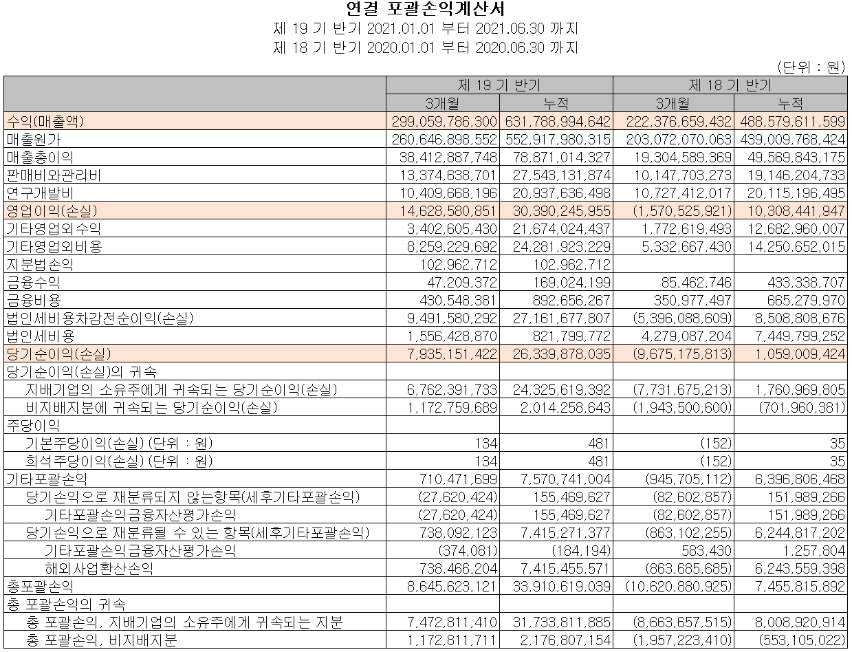 지난 2분기 당사의 실적은 매출액 2,991억 원으로 전년 동기 대비 34.5% 증가했고, 영업이익은 146억 원, 당기순이익은 79억 원으로 각각 흑자 전환했습니다. 스마트폰 부문 주 고객사인 삼성전자의 2분기 판매량이 감소하면서 당사의 매출도 하락했으나 2분기 영업이익은 시장 예상치를 상회하였습니다.