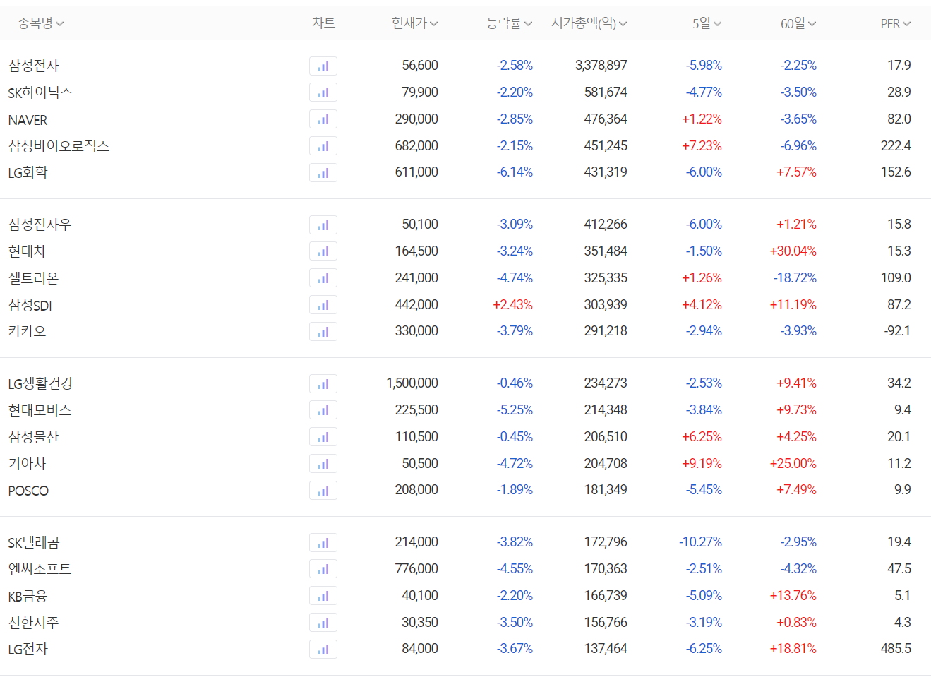 요즘 2차전지 섹터를 포함한 대부분의 성장주들이 조정을 겪고 있습니다. 이슈나 공시에 따른 종목별 등락이 일부 종목에서 발생하는 것 외에는 특이사항이 보이지 않습니다.