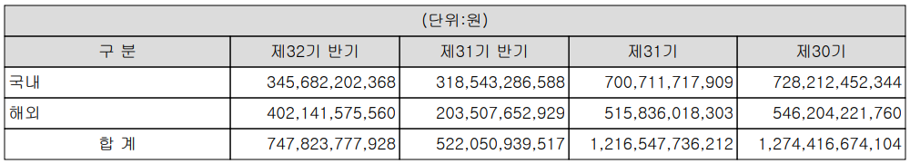 지난 상반기 매출에서 내수는 3,457억 원으로 46.2%, 수출은 4,021억 원으로 53.8%의 매출 비중을 나타냈습니다.