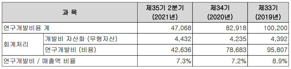 당사는 지난 상반기 매출액의 7.3%인 471억 원 규모의 비용을 투입하면서 자동차용, 교통신호등용, 전광판용, 조명용, LCD 광원용 등 신규 시장에 적용되는 제품의 연구개발을 지속적으로 수행하고 있습니다.
