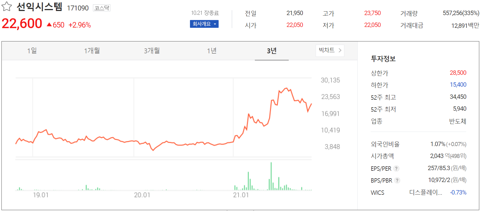 소형 OLED 제조 공정의 핵심인 증착 장비의 세계시장 점유율 1위 기업이며, 300 mm 웨이퍼 양산장비를 생산하는 유일한 기업인 (주)선익시스템의 2021년 상반기 실적 분석 및 주가 전망을 알아보겠습니다.
