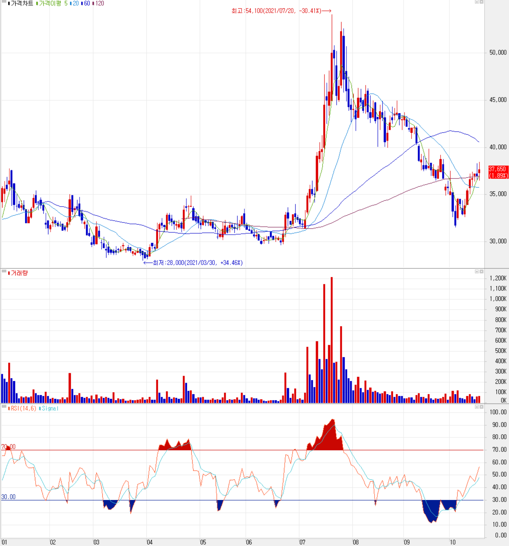 지난 7월 메타버스 열풍이 불기 시작했고, 현대차의 당사 디지털 트윈 솔루션 도입 소식, 조달청 나라장터 시스템 수주 등의 소식이 겹치면서 급등하여 단숨에 5만 원을 훌쩍 넘겼으나 이후 급등에 따른 조정과 시장 변동성을 겪으면서 3만 원 대 초반까지 하락하다가 최근 정부의 메타버스 투자 소식 등이 나오면서 반등세를 보이고 있습니다. 수급에서는 최근 10 거래일 연속 순매수하고 있는 기관이 주가 상승을 이끌고 있으나 거래량이 늘지는 않는 상황입니다. 최근 사업현황 및 차트 소견을 종합한 개인적인 목표주가는 43,000원으로 설정하였습니다. 최근 뜨거운 관심을 받고 있는 메타버스에 대한 드림팀을 구성하는 등 역량을 확보하고 디지털 트윈 등 AI 데이터를 기반으로 한 기술력을 확보하고 있으나, 외형 확대에 따른 가시적인 실적 전망이 중장기적으로는 필요할 것 같습니다.