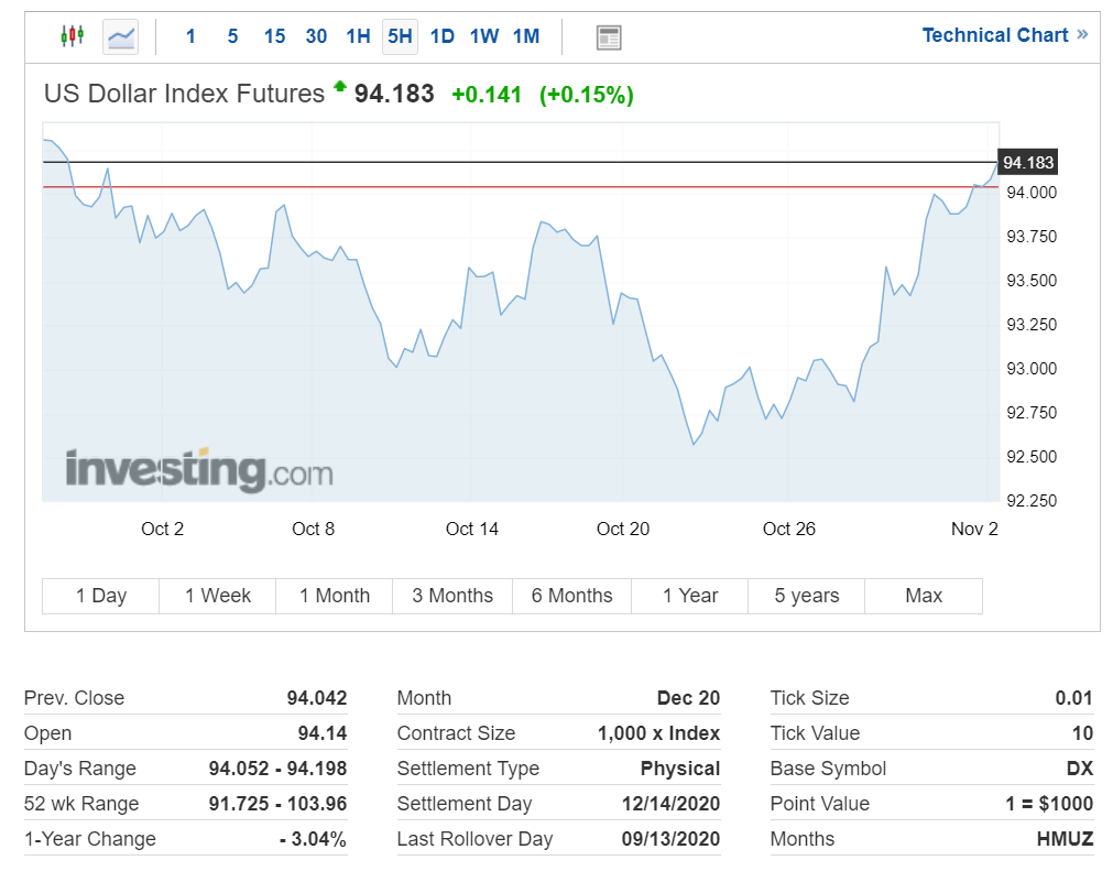 미국 달러 인덱스는 지난 10월 22일을 기점으로 현재까지 반등하는 모습입니다.