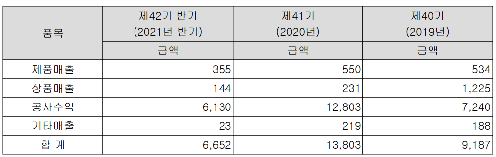 주요 사업 부문 및 제품의 매출 현황