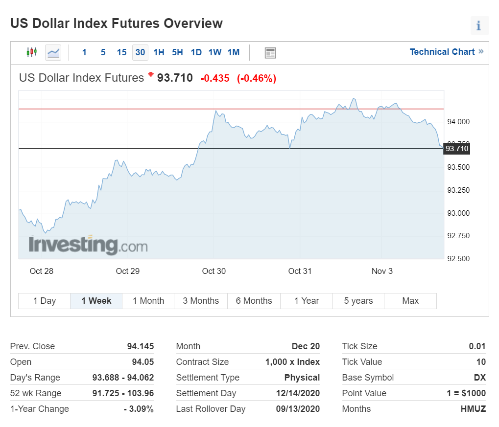 지난 밤 뉴욕 증시는 지난주 금요일 급격한 하락에 대한 반발매수로 상승 출발했으나 장중 하락하다가 상승 마감했습니다. 전날 발표된 미국 10월 제조업 구매관리자지수(PMI)가 2018년 9월 이후 최고 수준을 기록한 것도 증시 상승의 한몫을 차지한 것 같습니다. 또한 시장은 트럼프와 바이든 후보 간의 지지율 격차에 따른 대선 판세도 어느 정도 바이든 후보의 승리로 판단한 것 같습니다.