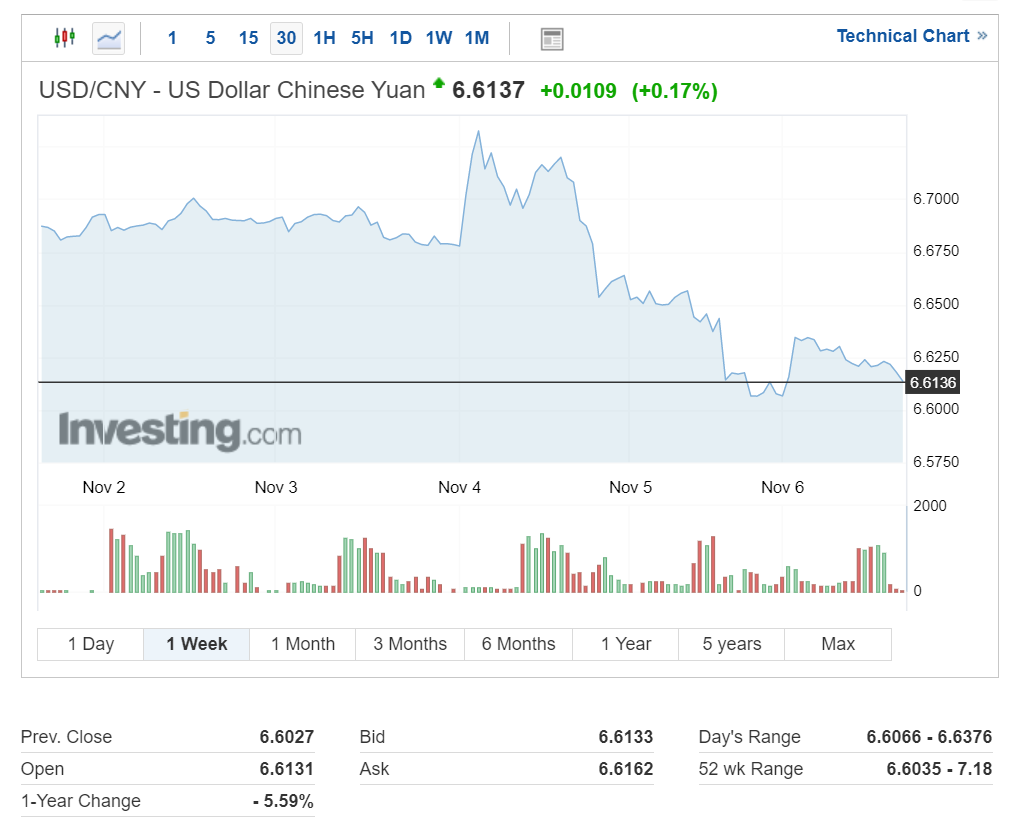위안화도 지난 2일간 급락세를 보이면서 1달러당 6.6136위안을 기록하고 있습니다.