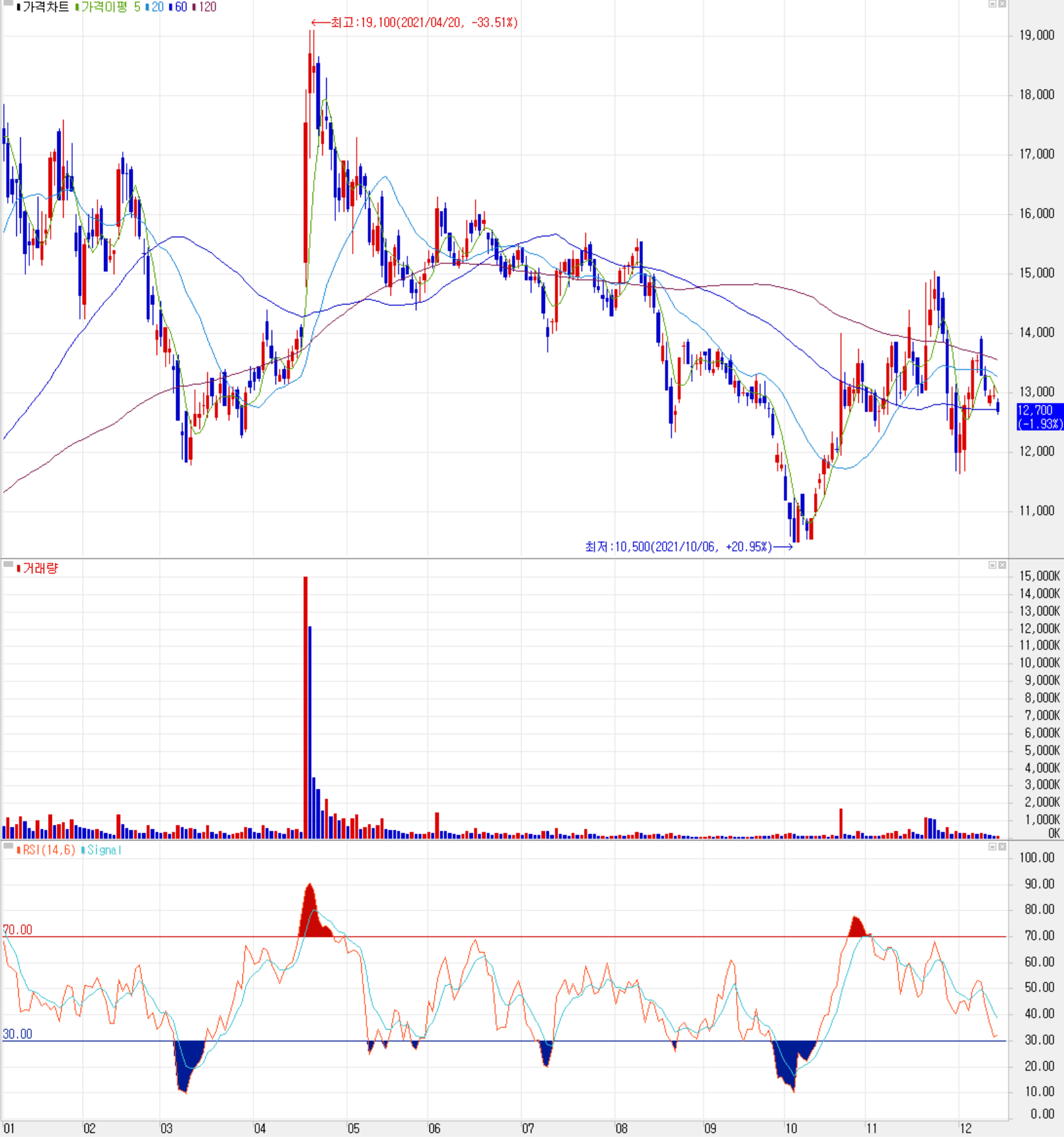12월 14일 장 종료 기준 당사의 주가는 전일보다 1.93% 내린 12,700원에 거래를 마감했습니다. 외국인 비중은 1.46%이며, 시가총액 2,217억 원으로 코스닥 시총 기준 445위 종목입니다.