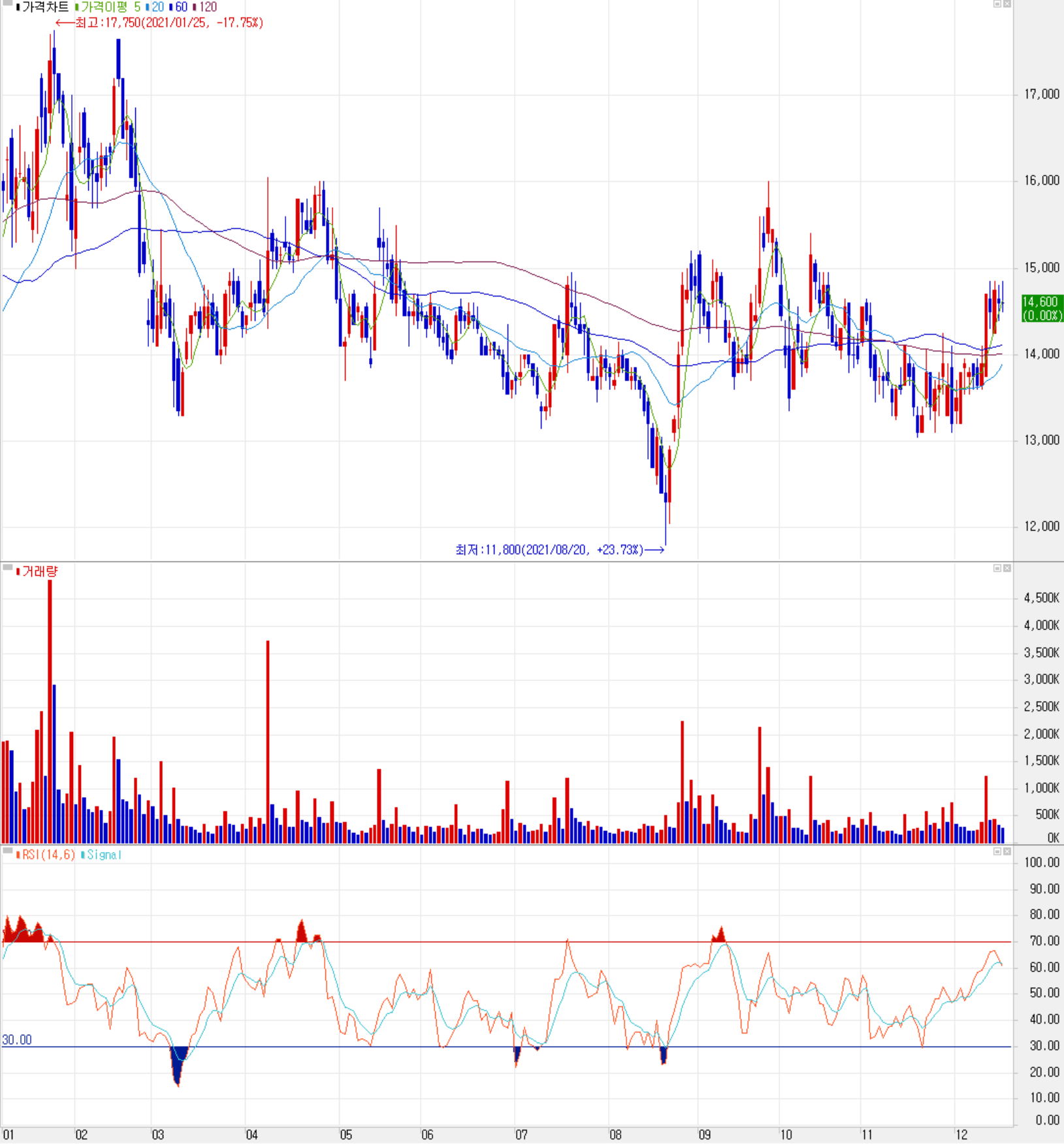 12월 16일 장 종료 기준 당사의 주가는 전일 종가와 같은 14,600원에 거래를 마쳤습니다. 외국인 비중은 5.21%이며, 시가 총액 4,787억 원으로 코스닥 시총 기준 186위 종목입니다.