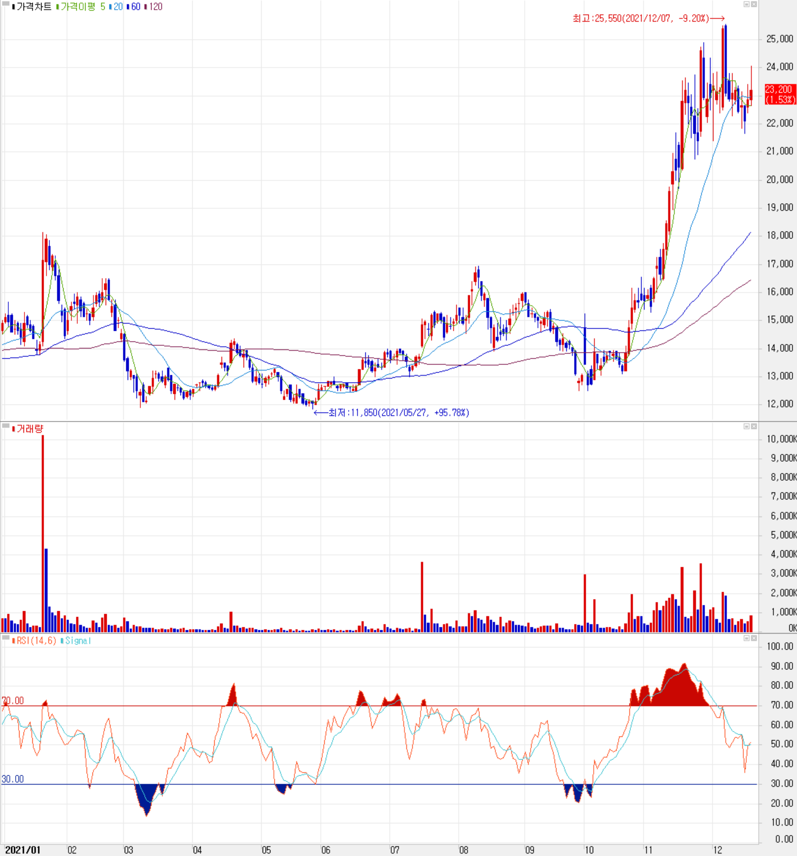 12월 17일 장 종료 기준 당사의 주가는 전일보다 1.53% 오른 23,200원에 거래를 마감했습니다. 외국인 비율은 5.96%이며, 시가총액 5,480억 원으로 코스피 시총 기준 338위 종목입니다.