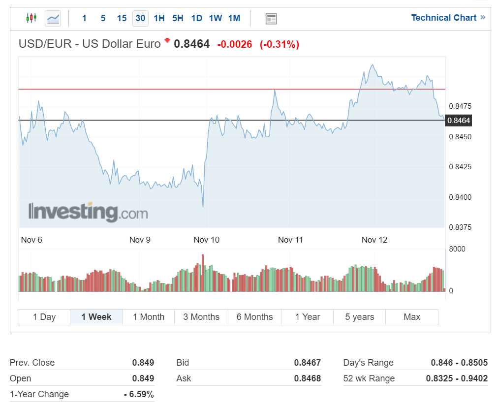 유로 환율도 이번 주 초반 상승세를 유지하면서 1달러당 0.8464를 기록 중입니다.
