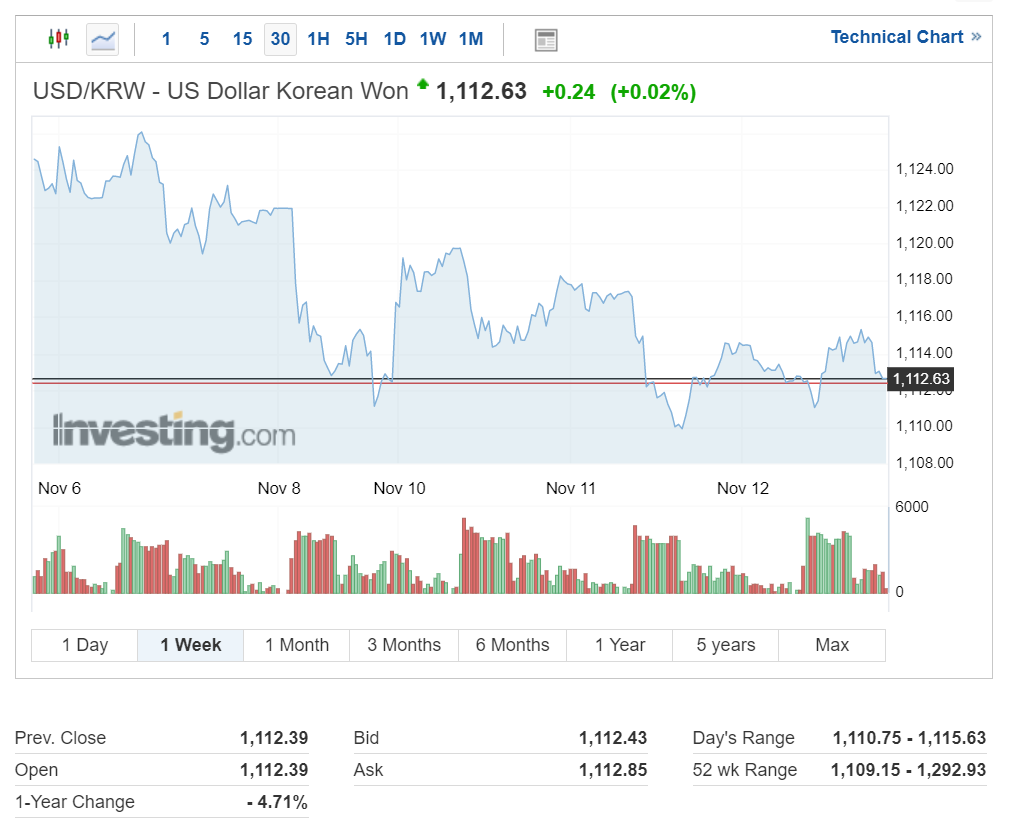 원달러 환율은 어제 1110원 선 아래를 위협했으나 오늘은 반등하면서 1112.63을 기록 중입니다.