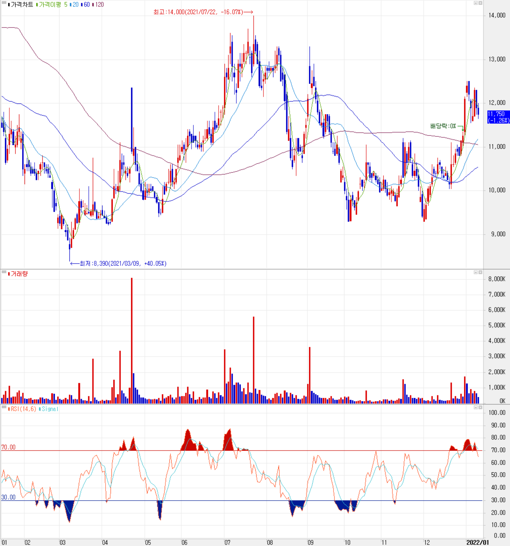 1월 11일 장 종료 기준 당사의 주가는 전일보다 1.26% 내린 11,750원에 거래를 마쳤습니다. 외국인 비율은 21.03%이며, 시가총액 7,678억 원으로 코스피 시총 기준 282위 종목입니다.