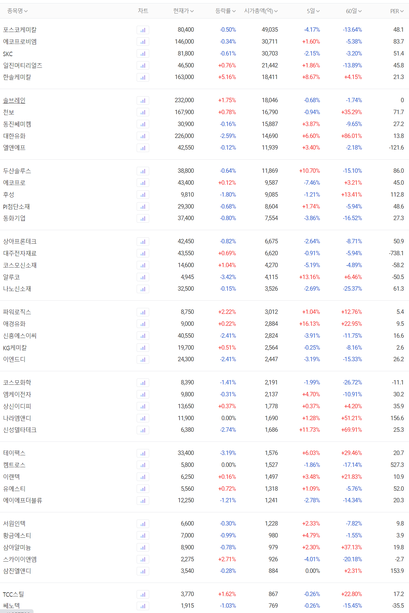 전기차 배터리(2차전지) 소재 관련주 대장주 주간 시황