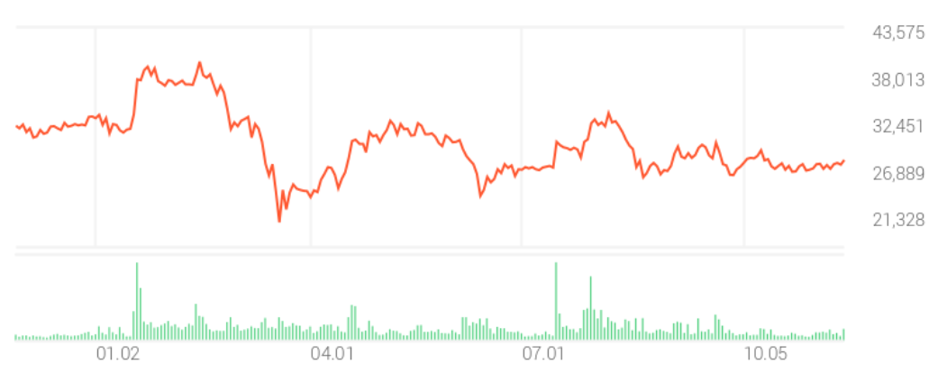 지난 1년간 PI첨단소재의 차트입니다. 3월 19일 코로나19 충격을 벗어난 듯하지만 아직 전고점 회복을 못하고 있습니다. 11월 16일 종가 기준 52주 최고가는 41,700원 최저가는 21,300원입니다.