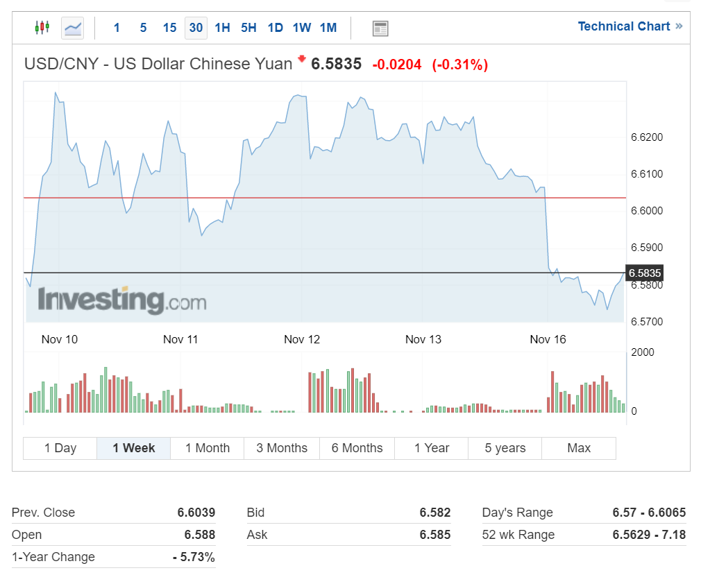 위안화 절상 기조도 계속 유지되면서 현재 1달러당 6.5835위안을 기록 중입니다.