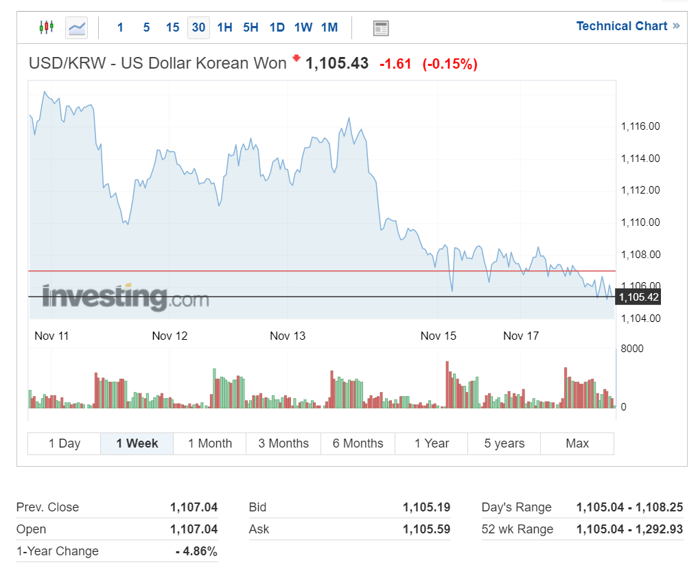 오늘 서울 외환시장에서는 전 거래일 대비 3원 하락하면서 1105.50에 마감했습니다.