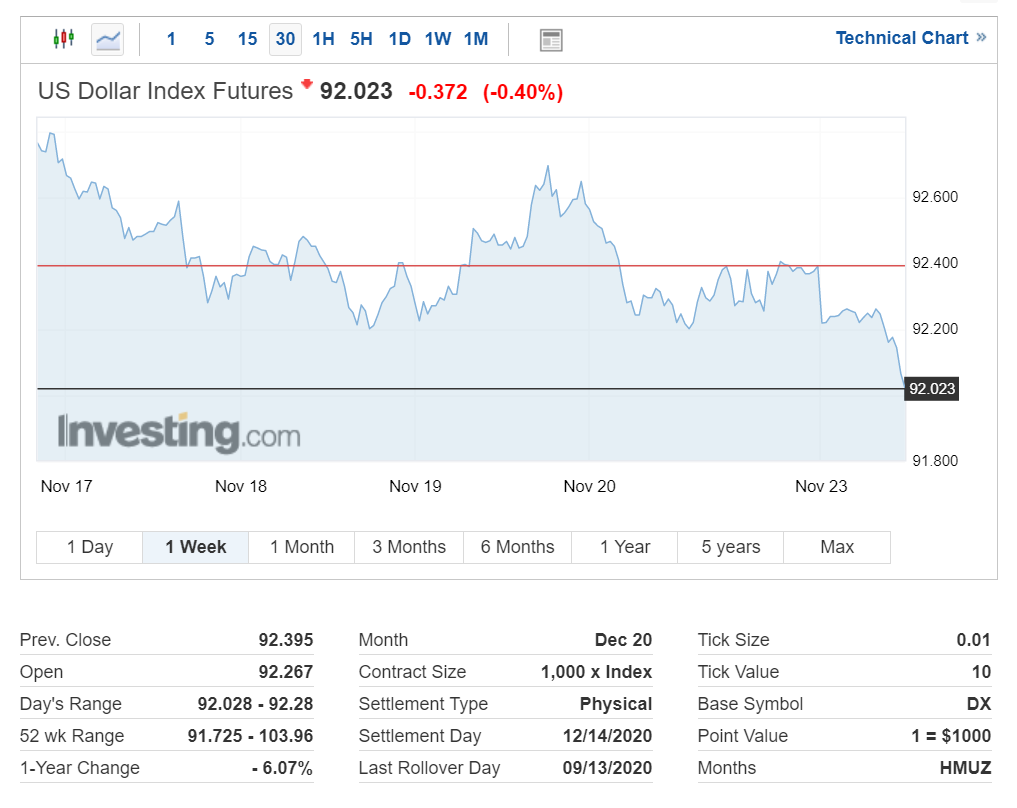 미국 달러도 당국의 일부 회사채 회수 소식에 따라 달러 강세를 보였으나 오늘 선물 시장에서는 다시 하락하면서 92포인트 아래를 내려다보고 있습니다.