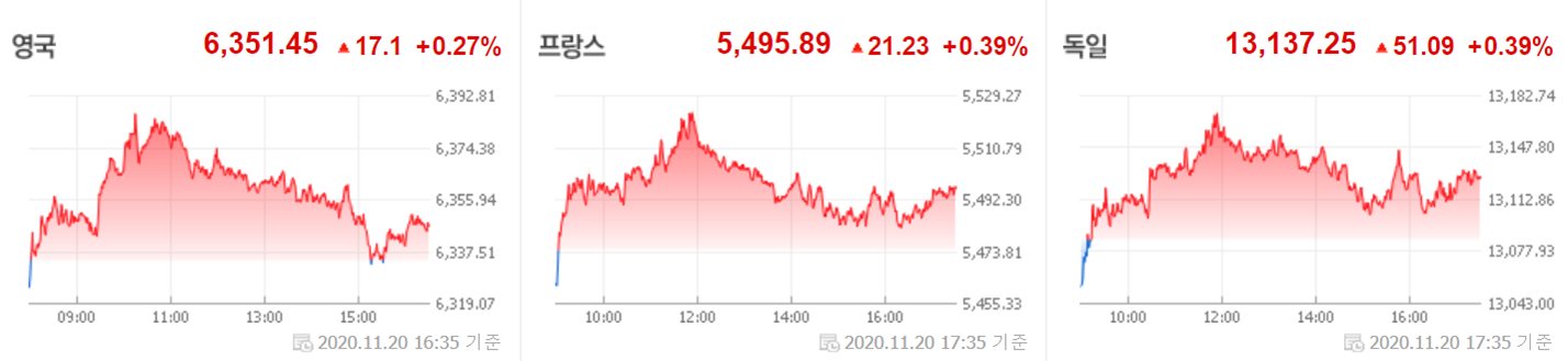 11월 20일 유럽 주요국 증시 마감 시세 (자료: 네이버 금융)