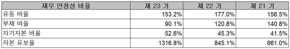 2021년 말 총자산은 전기말보다 39.1%(2,027억) 늘어난 7,215억 원으로 현금성 자산, 매출채권, 재고자산 및 관계기업 투자자산, 유형자산의 증가에 기인합니다. 부채총계는 20.5%(582억) 늘어난 3,421억 원으로 장단기 차입금 및 비유동 장기차입금 등의 증가에 따릅니다. 자본총계는 배당금의 지급과 지분법 변동에 따른 유출이 있었으나 당기순이익, 해외사업 환산이익 및 전환권 발행과 종속기업의 유상증자 등으로 총 61.5%(1,445억) 늘어난 3,795억 원을 기록했습니다.